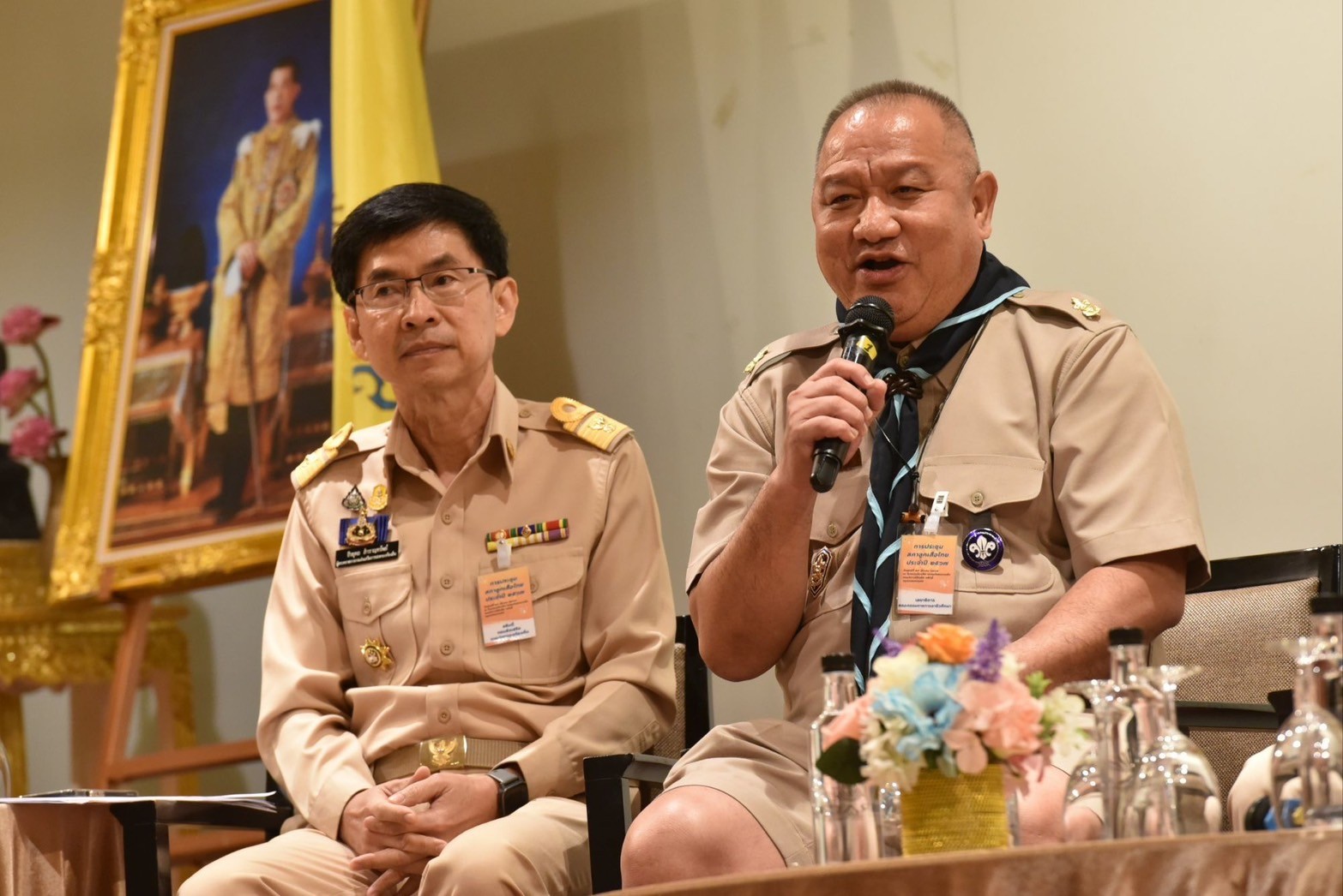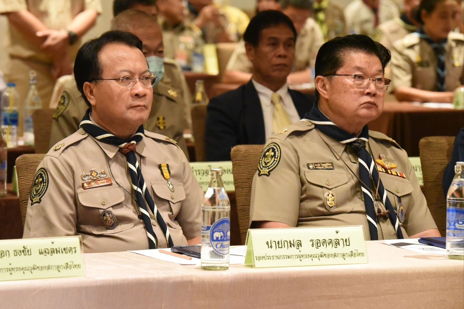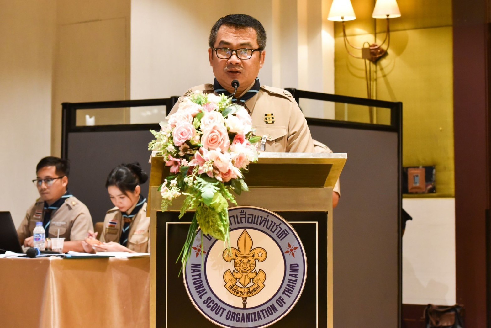 โดยมี พล.ต.อ.เพิ่มพูน ชิดชอบรัฐมนตรีว่าการกระทรวงศึกษาธิการ ในฐานะประธานกรรมการบริหารลูกเสือแห่งชาติ นายสุรศักดิ์ พันธ์เจริญวรกุล รัฐมนตรีช่วยว่าการกระทรวงศึกษาธิการ นายสุเทพ แก่งสันเทียะ ปลัดกระทรวงศึกษาธิการ นายวรัท พฤกษาทวีกุล เลขาธิการสำนักงานลูกเสือแห่งชาติ คณะกรรมการบริหารลูกเสือแห่งชาติ กรรมการผู้ทรงคุณวุฒิของสภาลูกเสือไทย และผู้แทนองค์กรภาคีเครือข่าย จำนวน 250 คน ให้การต้อนรับ ณ โรงแรมมิราเคิล แกรนด์ คอนเวนชั่น กรุงเทพฯ