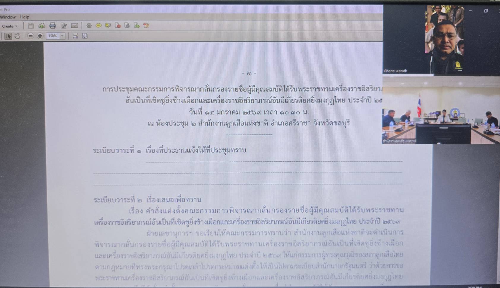 การประชุมคณะกรรมการพิจารณากลั่นกรองรายชื่อผู้มีคุณสมบัติได้รับพระราชทานเครื่องราชอิสริยาภรณ์อันเป็นที่เชิดชูยิ่งช้างเผือกและเครื่องราชอิสริยาภรณ์อันมีเกียรติยศยิ่งมงกุฎไทย ประจำปี 2569