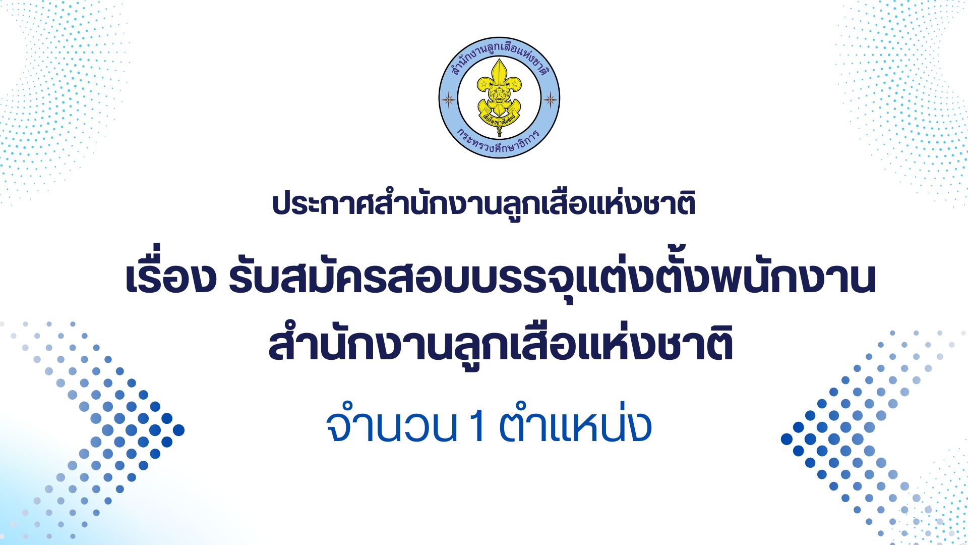 ประกาศสำนักงานลูกเสือแห่งชาติ เรื่อง รับสมัครสอบบรรจุแต่งตั้งพนักงานสำนักงานลูกเสือแห่งชาติ จำนวน 1 ตำแหน่ง